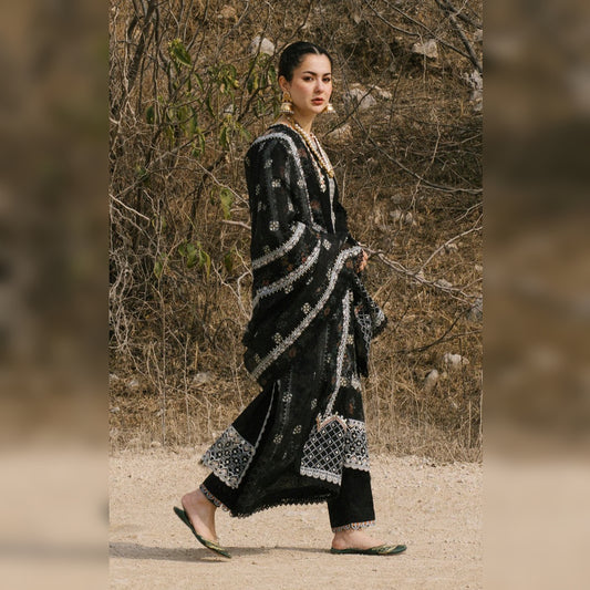 Sold outBlack lily Embroidered Lawn